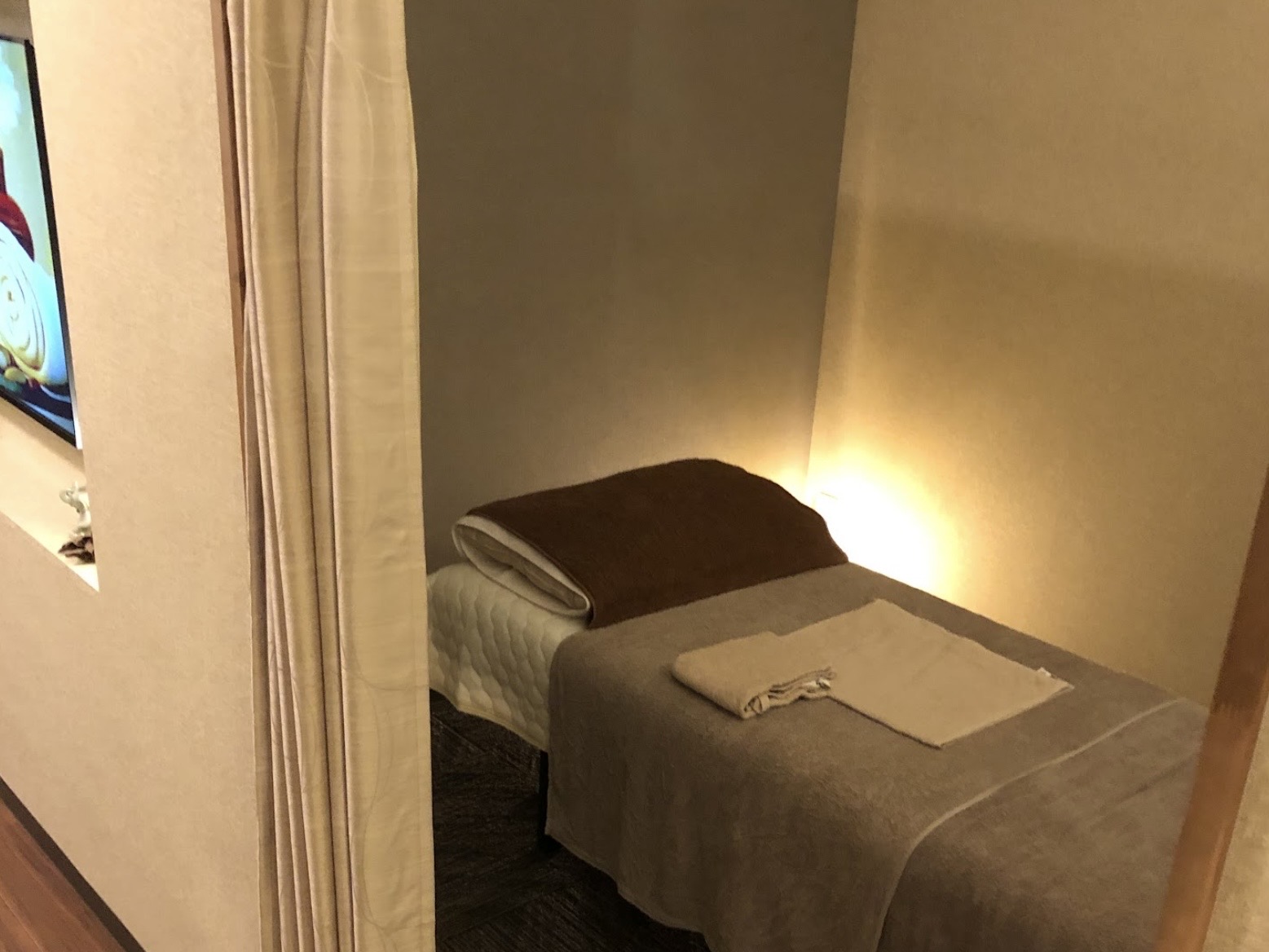 ベッドで受けるタイ古式ボディケアで体をゆるめます。