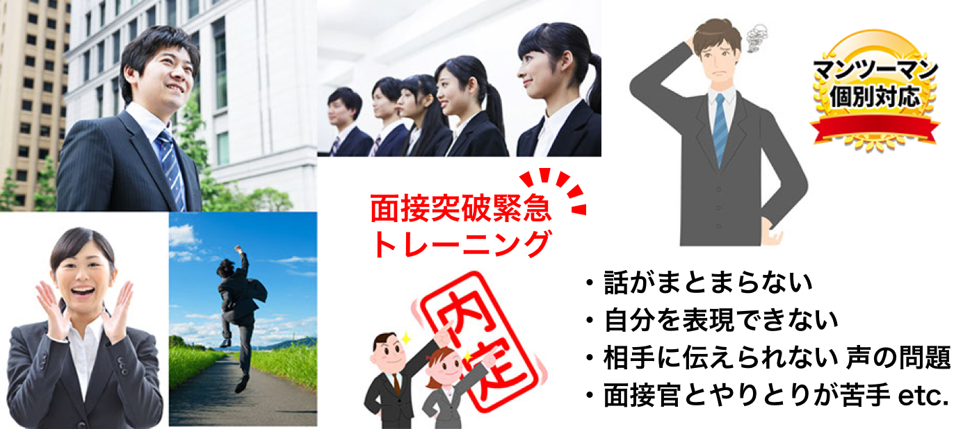 ・滑舌が悪く早口だったのですが、実際に声を録音いただきながら矯正してくれたのがよかった。録音データもいただけたので自宅でも練習でき大きな自信につながり第一志望に内定できました。後輩にも紹介したいです。