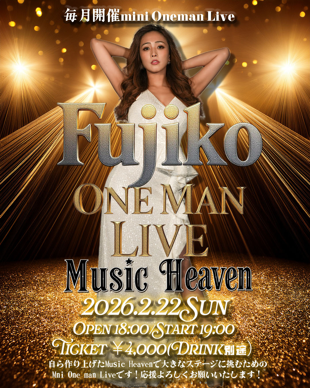 ダンスシンガーソングライターとして活動してるFujikoのオリジナル曲やLEDステージによるパフォーマンスなど、大きい目標にかけて毎月開催中!