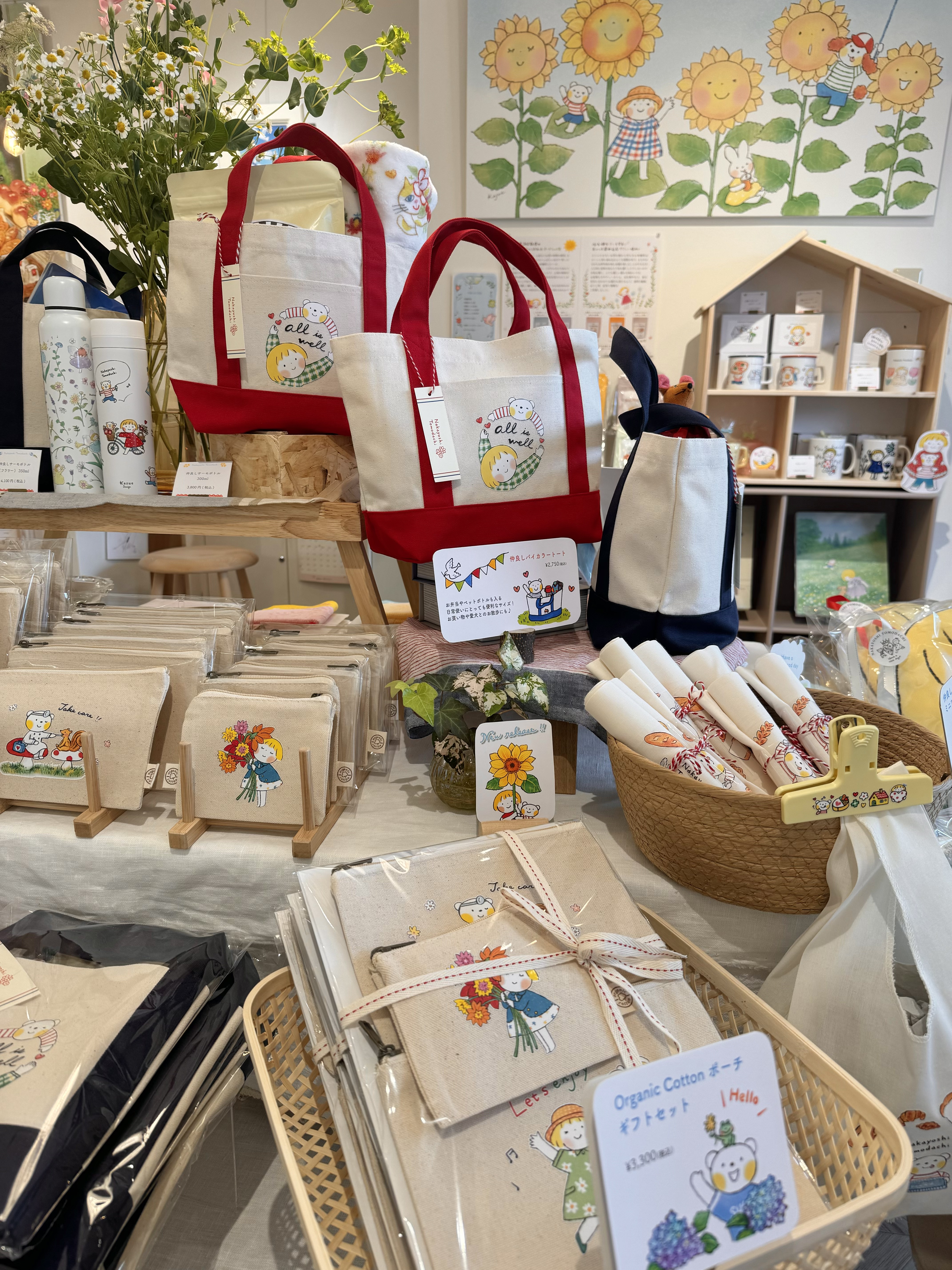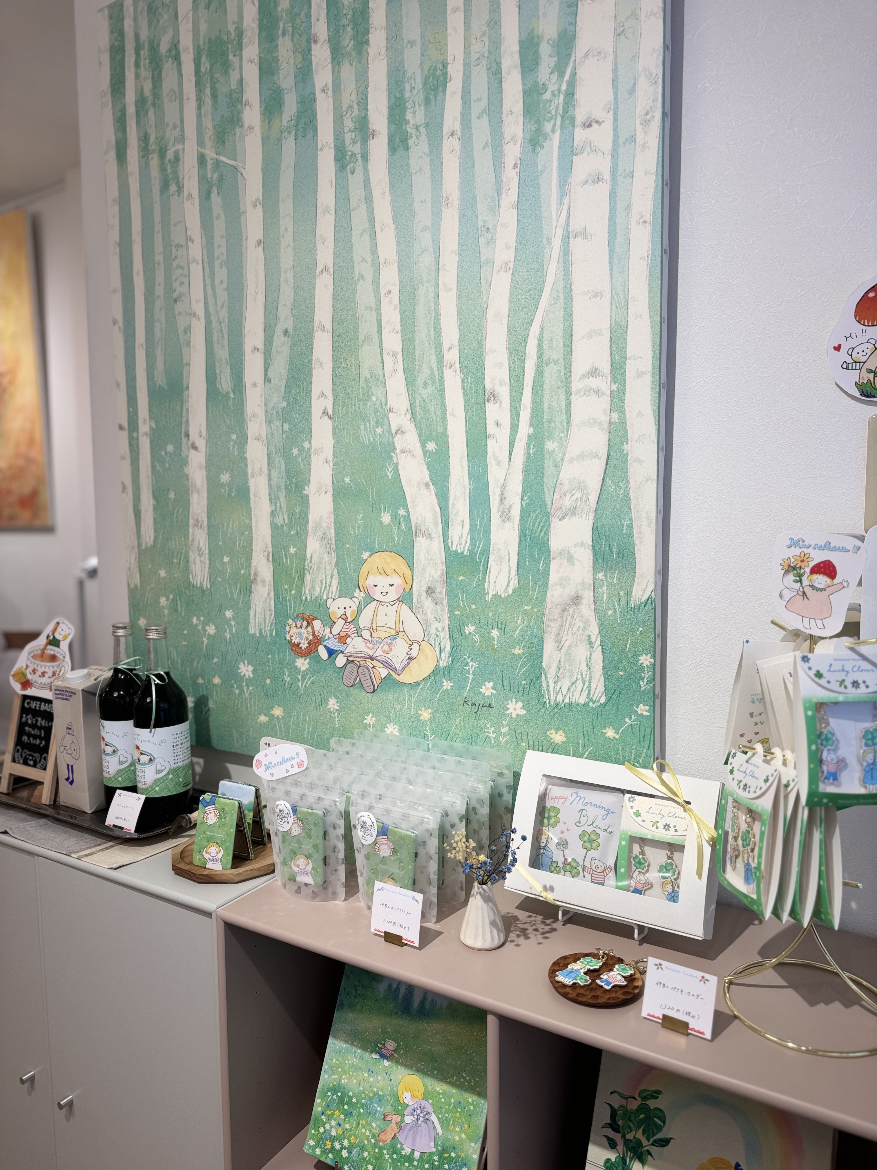 当店でしか買えないオリジナルグッズは常時約100種類、季節に合わせて作品の展示を変えてお待ちおります。