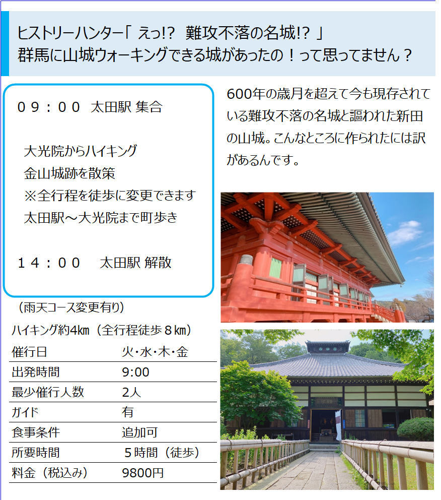 ・自由散策など密を避ける観光と長めの滞在時間をご用意します