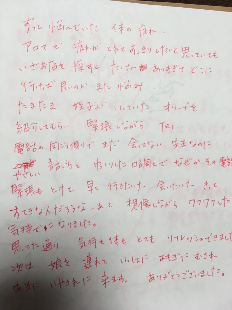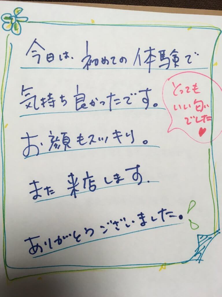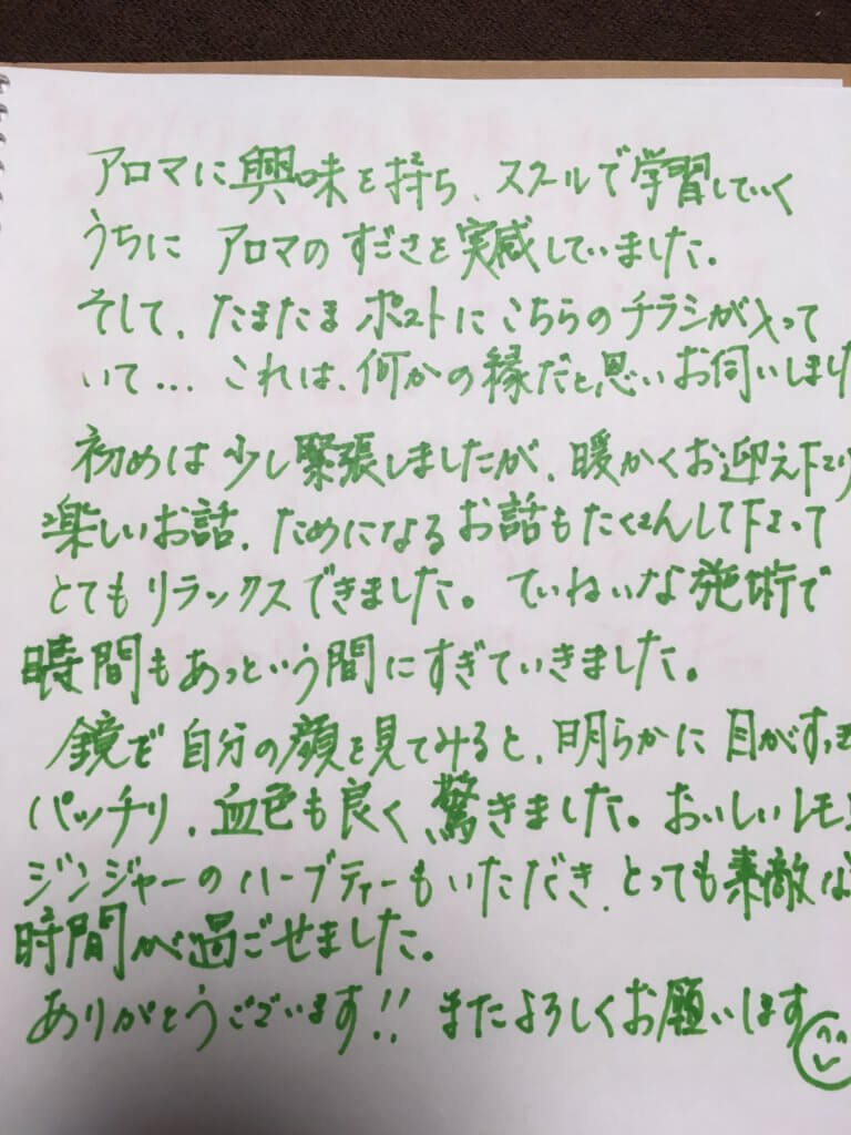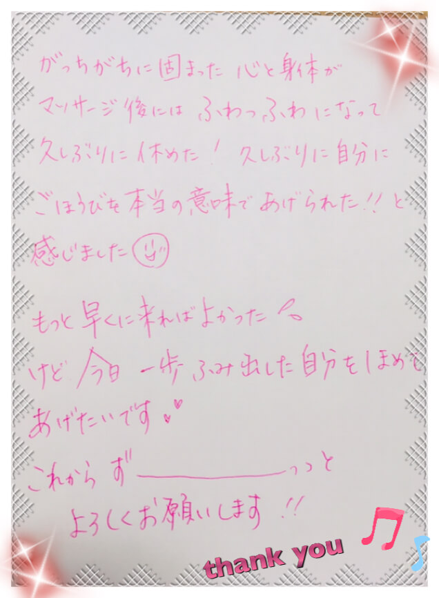 そんなとき、体を緩めていくと、施術後のお客様たちが、誰にも話せない本音をお話くださるのです。