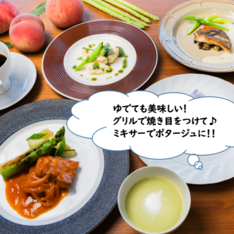 ※ SUZU農家×レストランをご利用のお客様は、ご予約時にアスパラガスの希望数量をお知らせください。