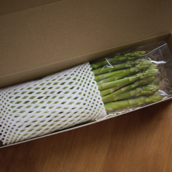 4.引取り当日の朝8:30に店頭にアスパラガスが設置されますので、好きな時間に引取りに行くことができます。(お店は無人です)