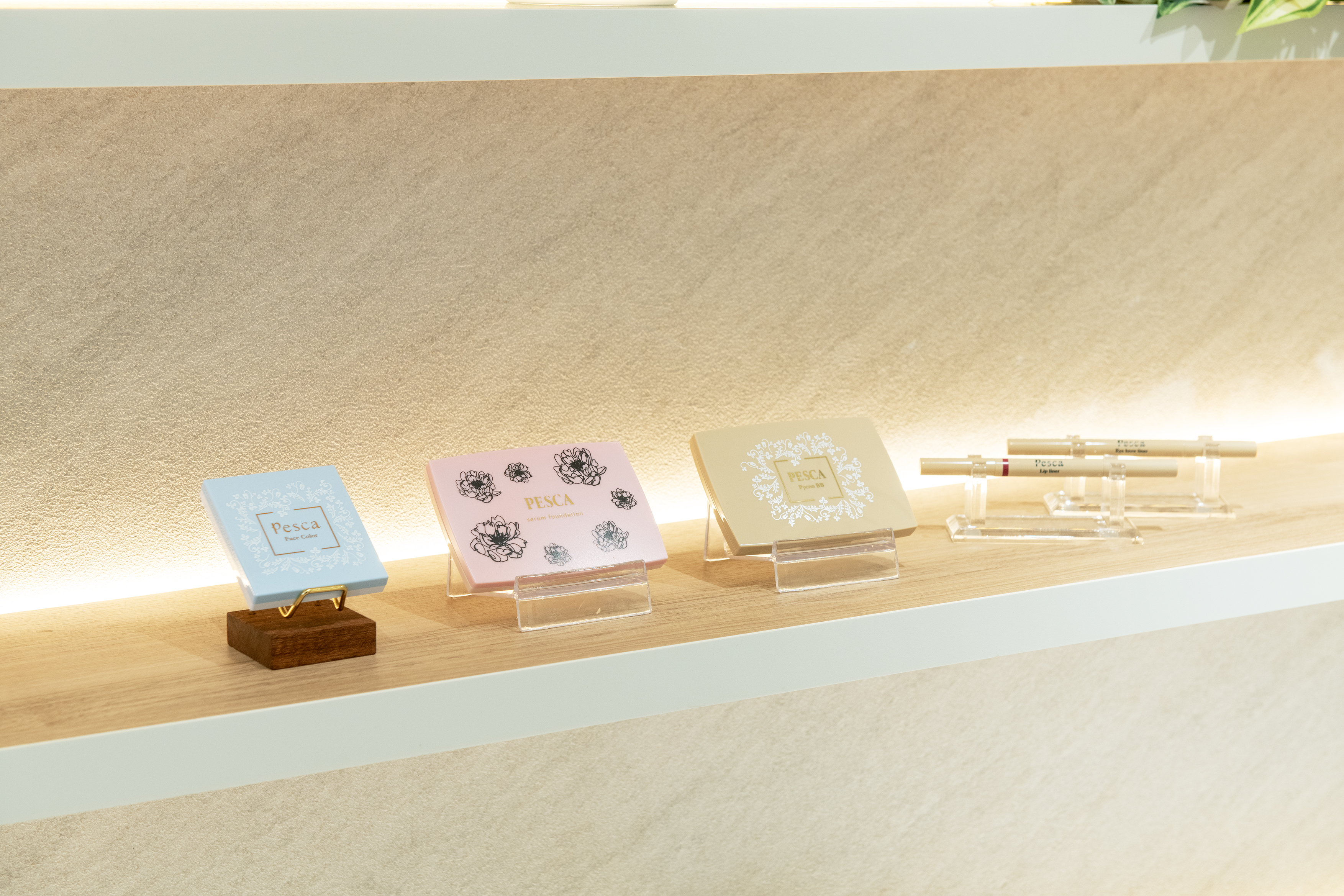 テレビでも話題の「ヘアメイト チャチャ」や「美容液ファンデーション」・「スキンケア」などを、実際に手にとりながら、ゆったりとご体験していただける開放的な路面店です。