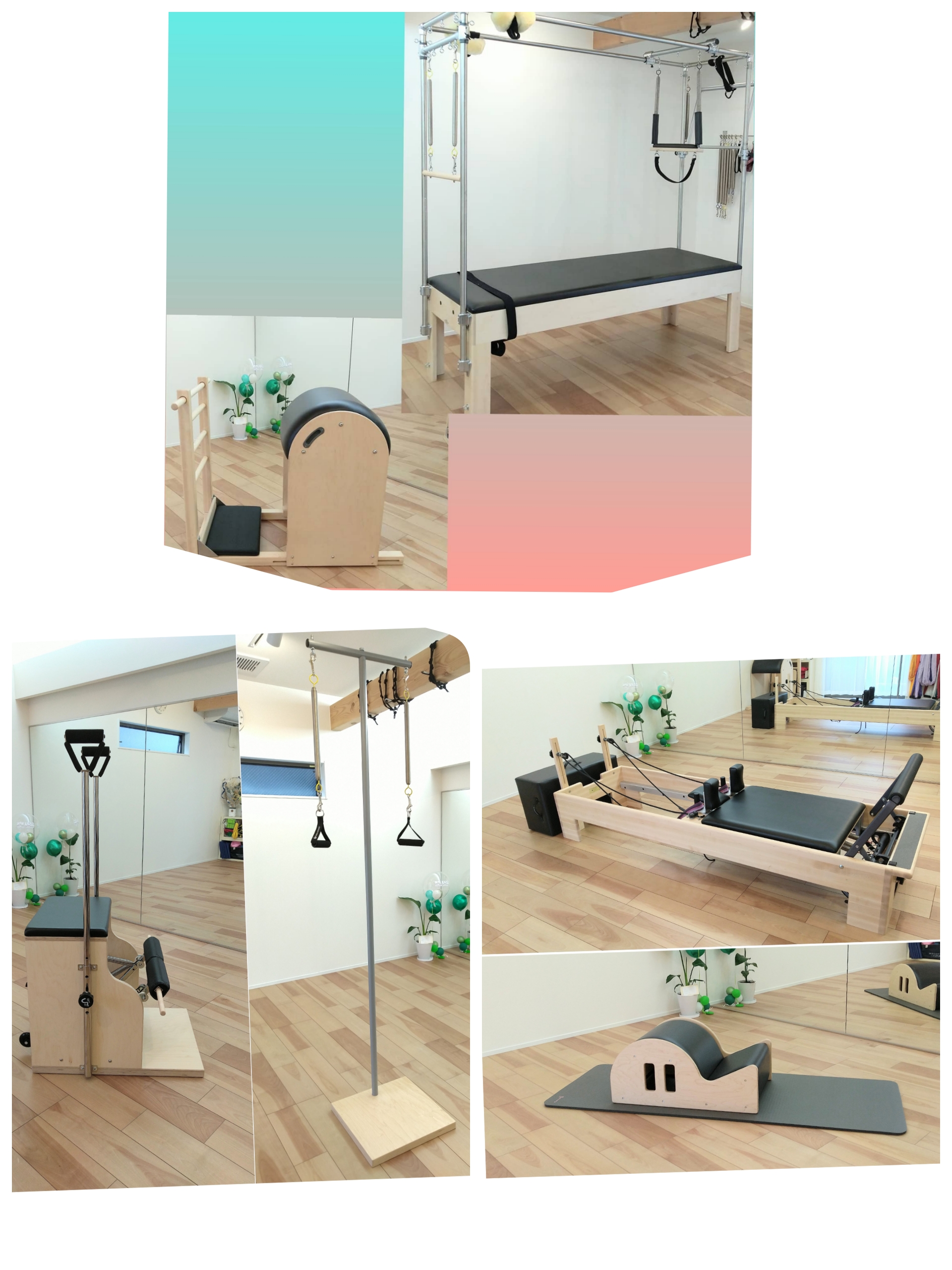 その為に当スタジオではお一人お一人の身体をしっかりと丁寧に見させていただけるように、少人数グループでのマットピラティスとシルクサスペンションレッスン、ピラティス専用のマシンを使用したパーソナルレッスンを行っています。