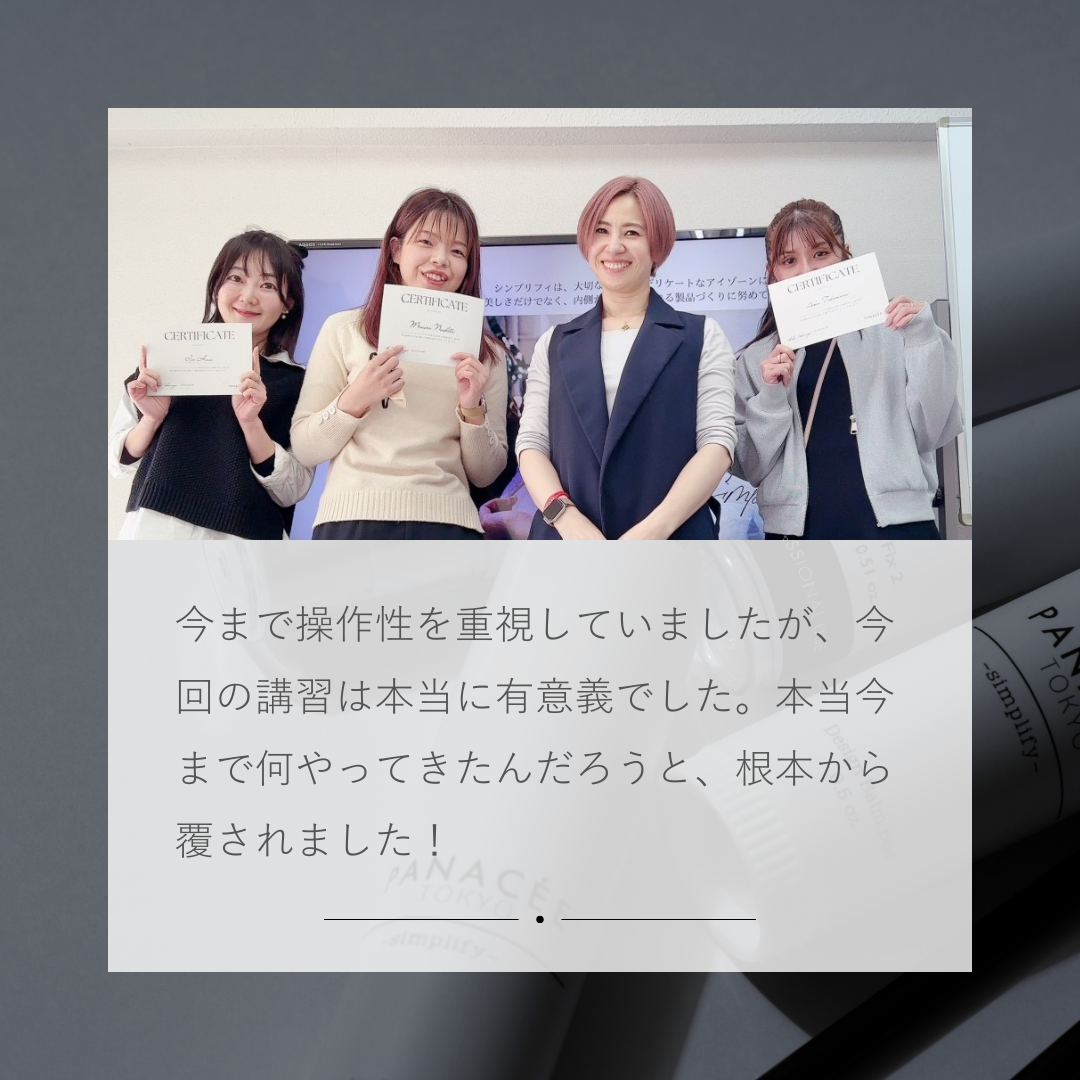 100%以上の技術とコツをお伝えしたいため、 対面型講習を行なっております。