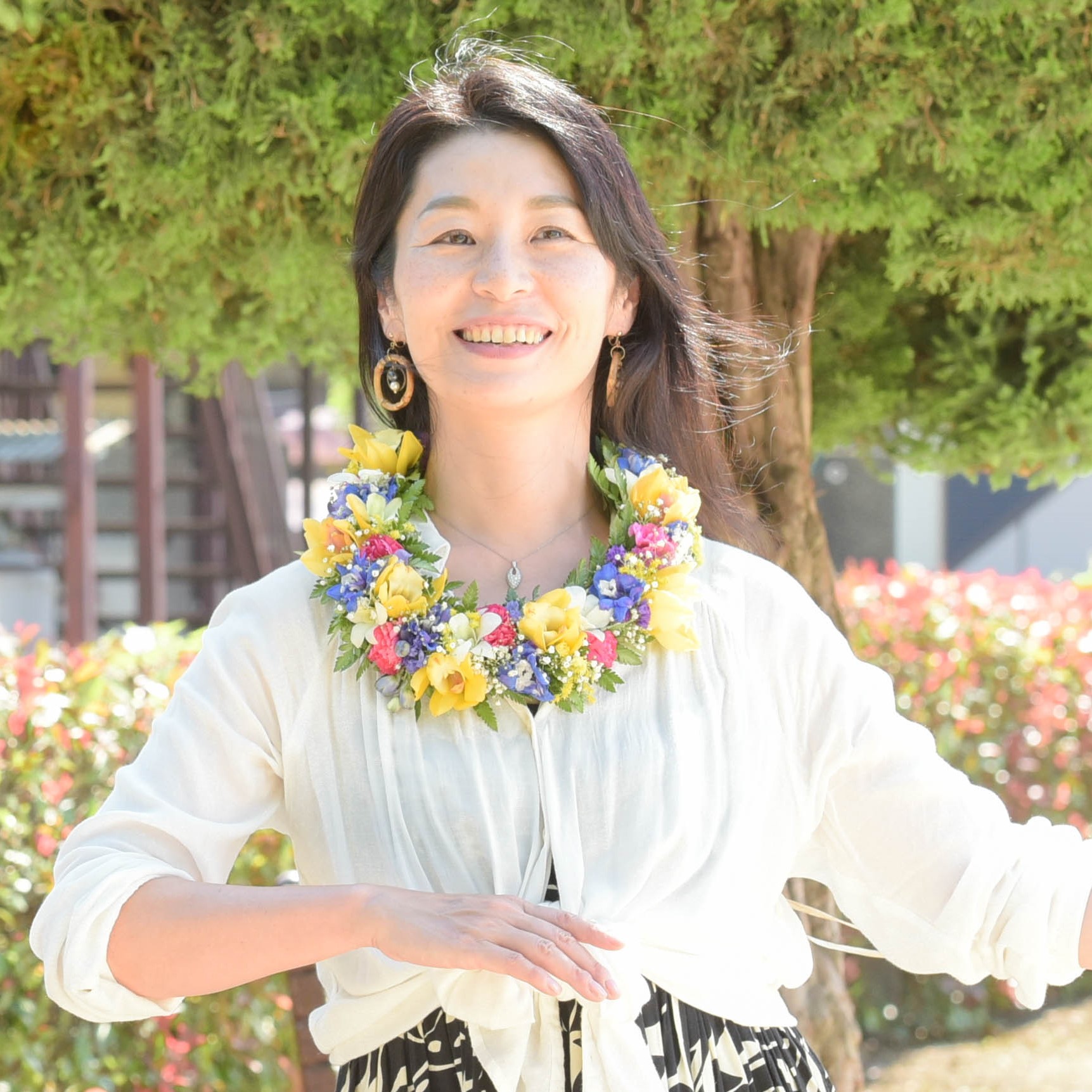 プロフィール:ハワイアン生花レイメイカー、Hula講師。ALOHAの心と光、美しさを伝えたいと草加や越谷で活動中。