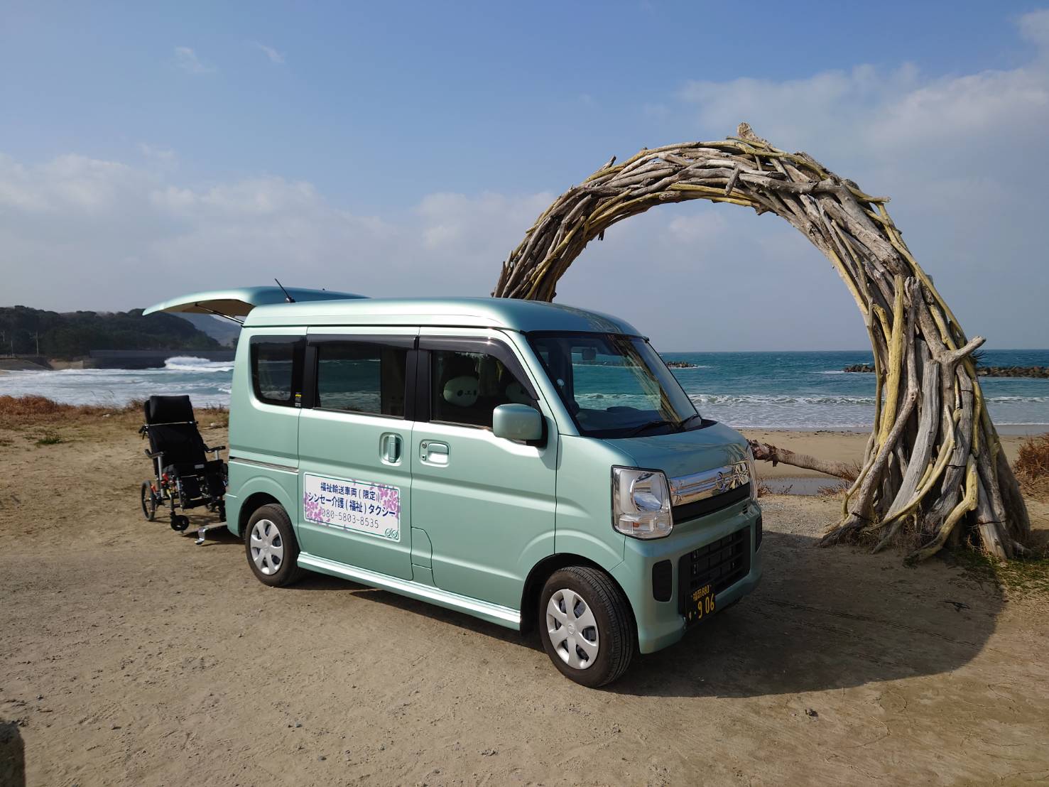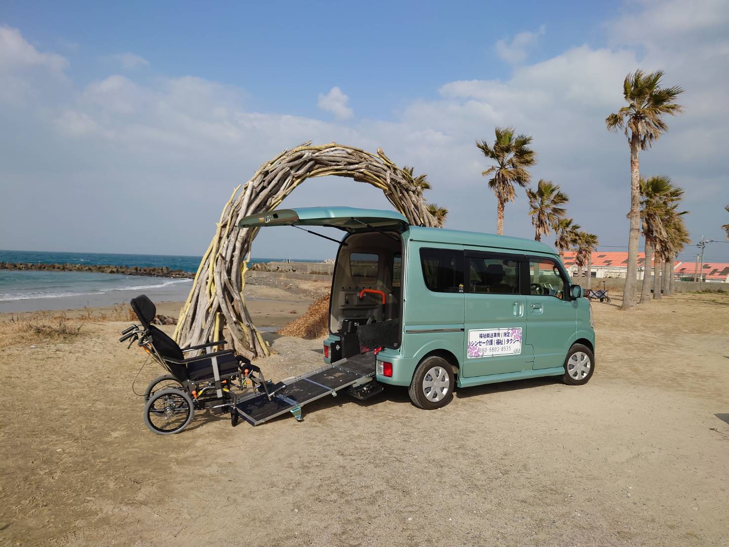 車両はこちらになります。車椅子のまま乗車出来ます。