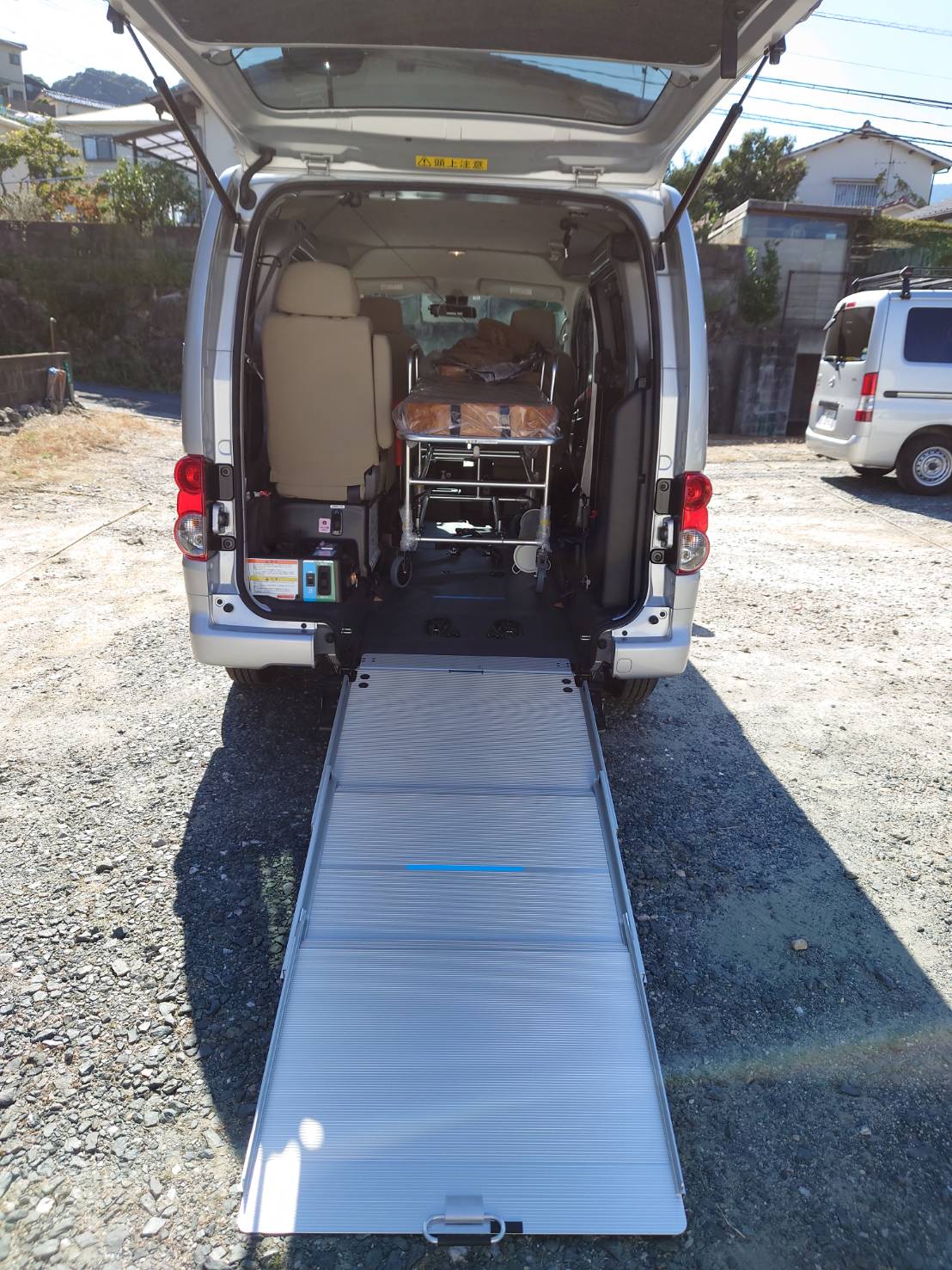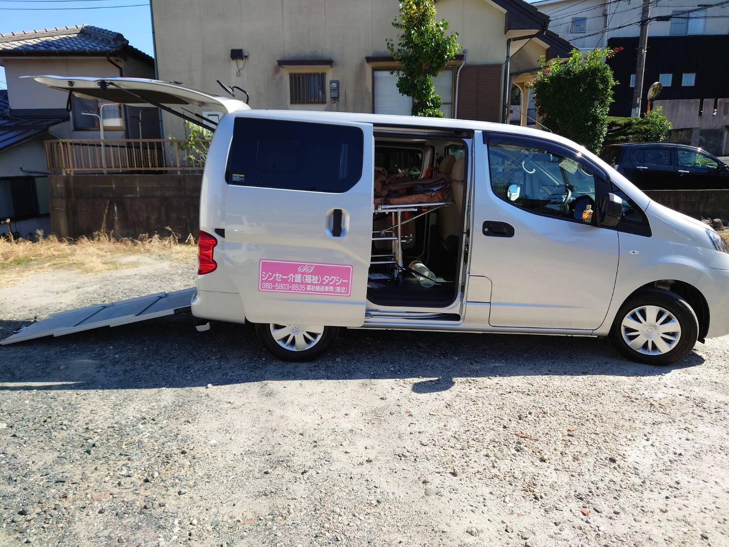 増車に伴いストレッチャーが対応可能となりました。フルリクライニング車イスもご用意しました。お問い合わせくださいませ。
