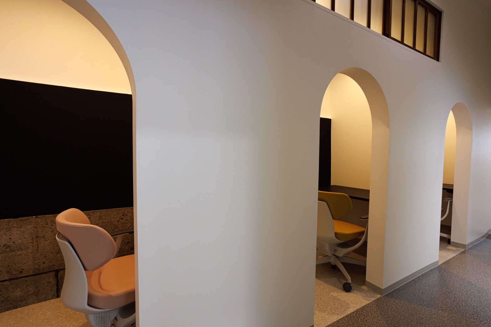 高校生以上なら、予約なしで誰でもご利用できるスペースです。蔵の中で落ち着いたフリースペースがご利用できます。事前予約が必要ですが、セミナー開催や講習会などのイベントの貸切利用ができます(利用時間9:00~18:00、フリーwifi、フリードリンク、75インチの大型モニター)