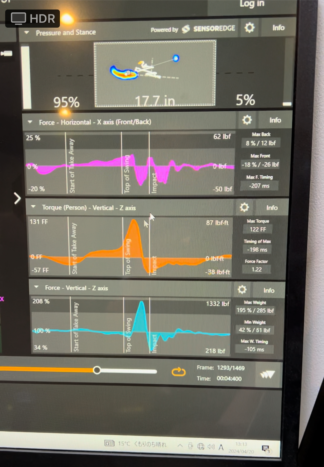 最新鋭の機材を使ってのレッスン。GCQuadでインパクト分析、Swingcatalyst社のモーションプレートで足のプレッシャーとフォース分析をします。
