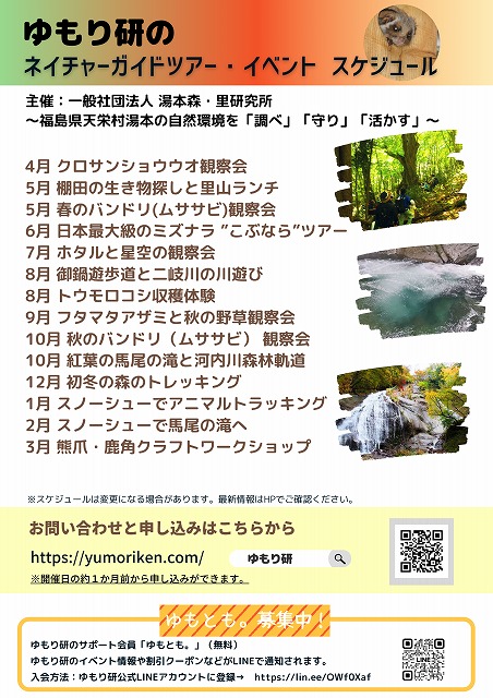 ★天栄村泊まって得とくキャンペーンの「1000円クーポン」が、ゆもり研のイベント・観察会で使用できます。