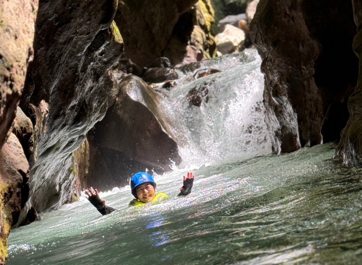 そのあとは、「シャワークライミング」で下から川をのぼるルートへ。
