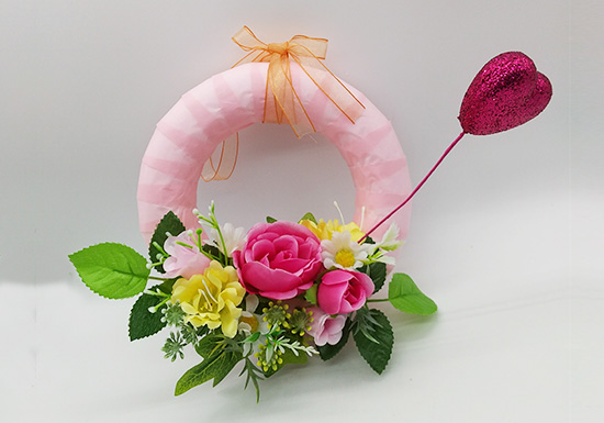 2月14日のバレンタインデーにちなんで、かわいらしいリースを作ります。