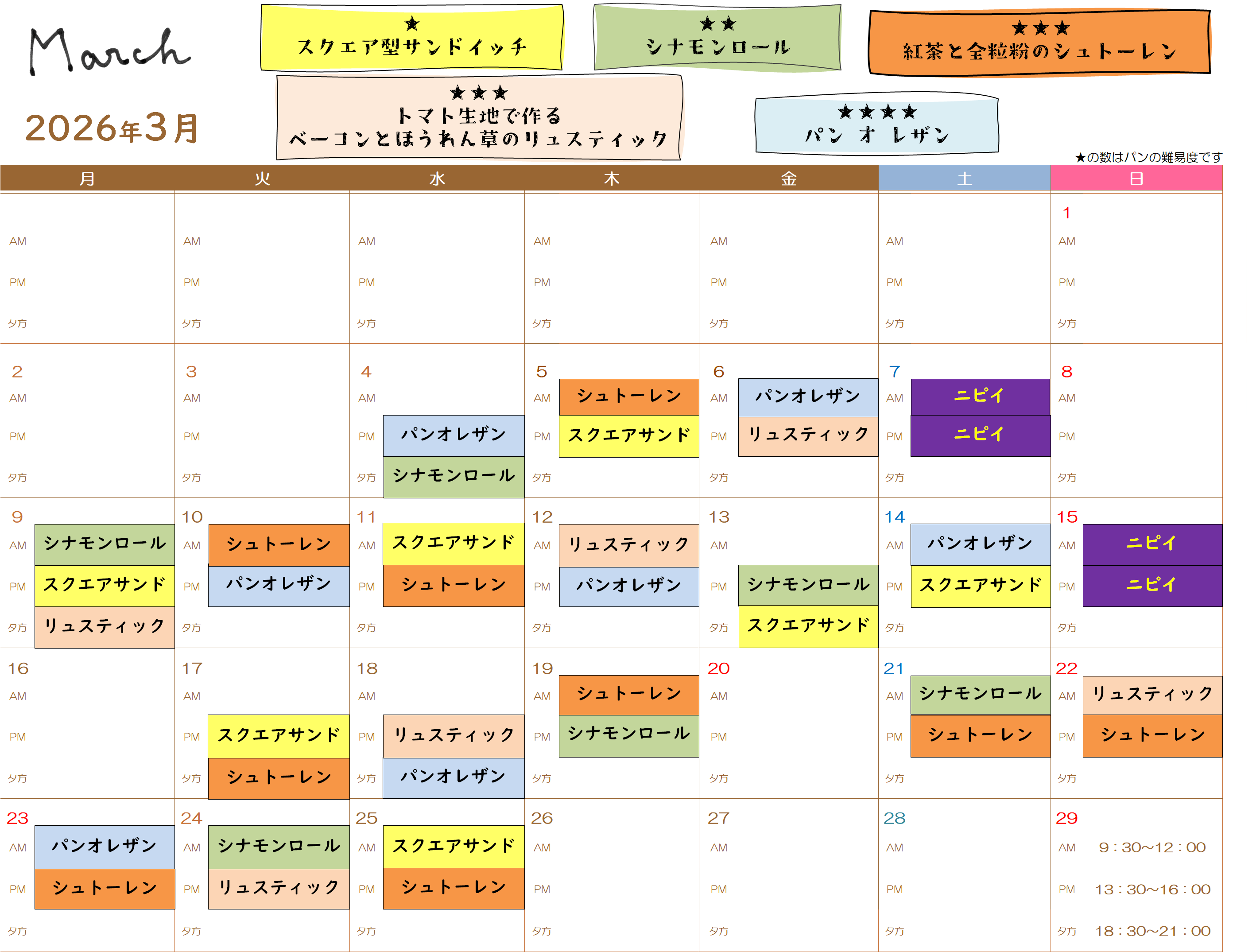| 月 | 火 | 水 | 木 | 金 | 土 | 日 |