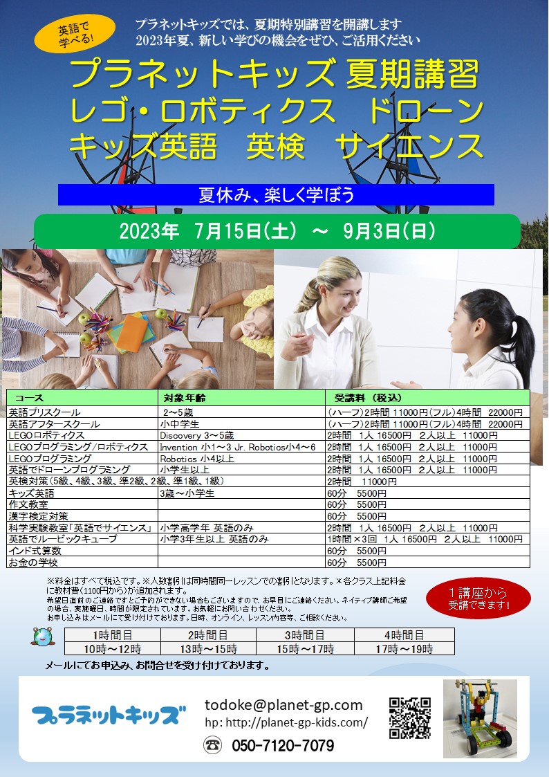 プラネットキッズ夏期講習 2023 7/15-9/03