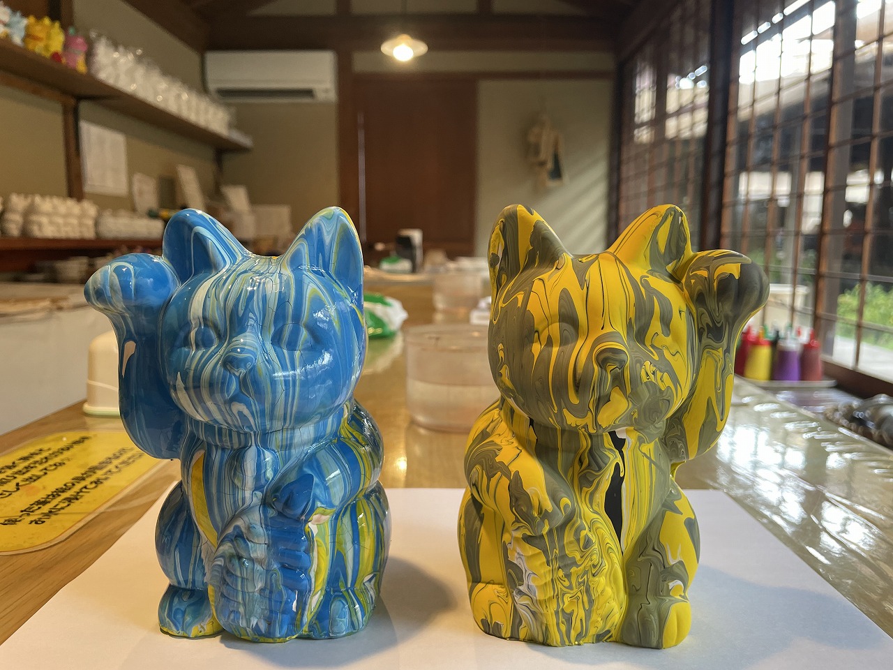 アクリル絵の具を真っ白の招き猫に垂らして楽しむ新感覚のアート体験。