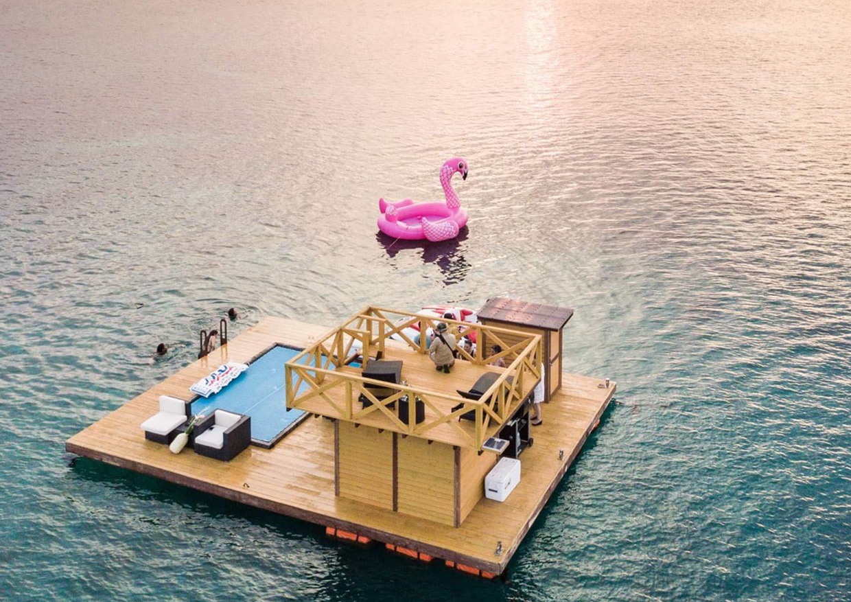 付属内容:ライフジャケット、クーラーボックス1つ、家具一式、サマーベッド2セット