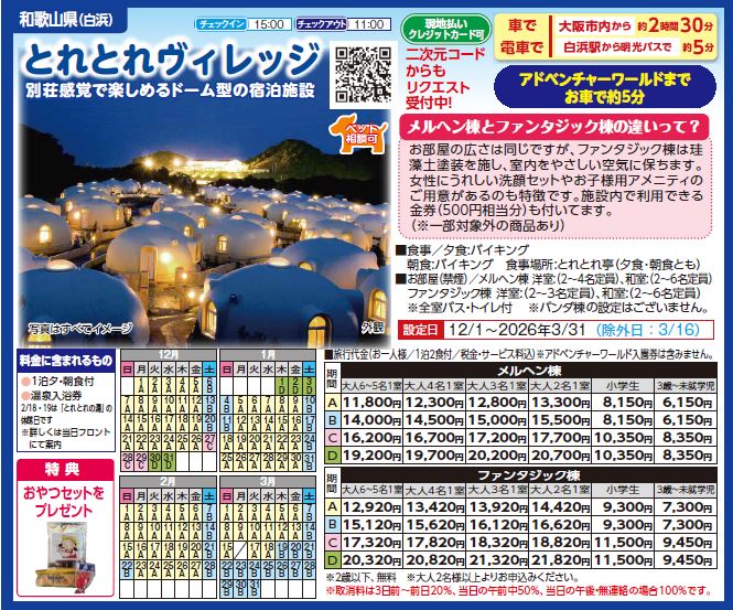 ※2歳以下、無料 ※大人2名様以上よりお申し込みください。