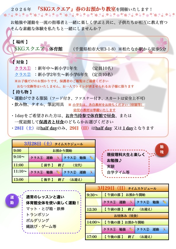 こちらは『SKGスクエア 2026 春のお預かり教室』のお申し込みフォームです。