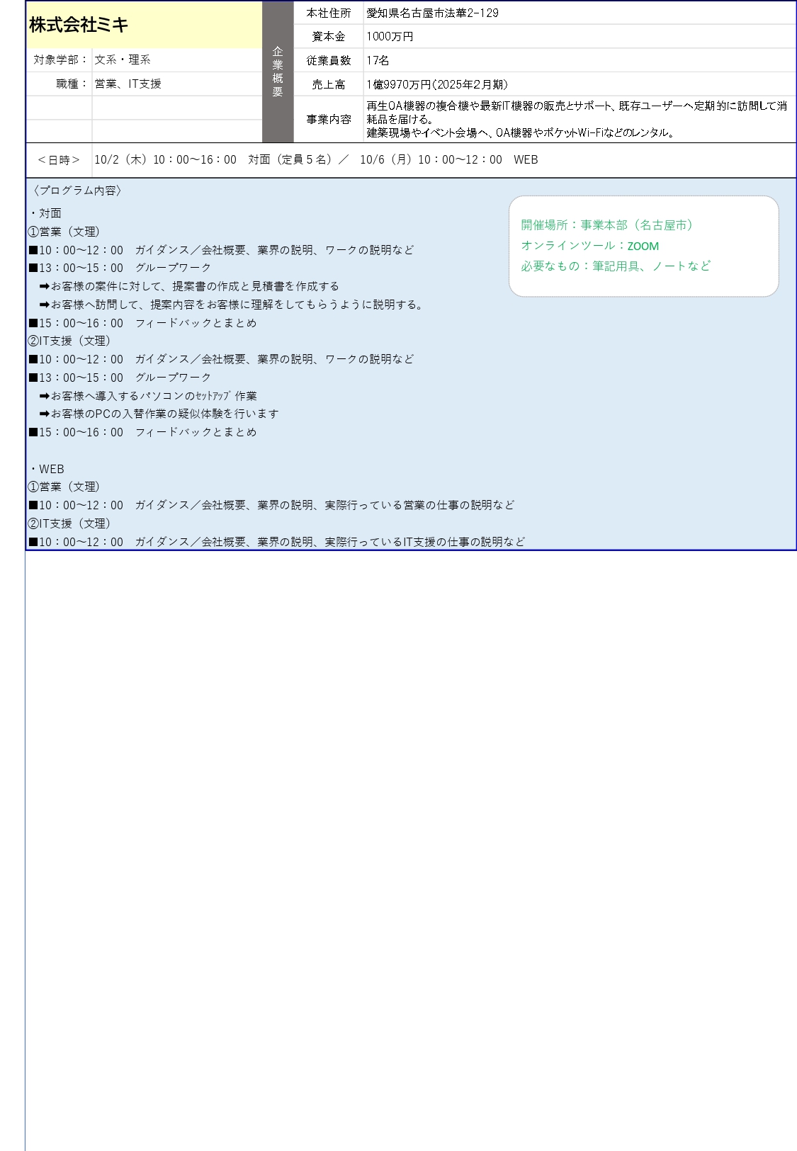 対面・オンライン インターンシップ・オープンカンパニー開催!