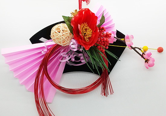 水引や造花を使って、お正月にぴったりのリースを作ります。