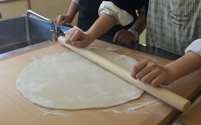 竜王産の蕎麦粉を使って、申込単位の量を参加者(グループ)で、そば打ち体験していただけます。