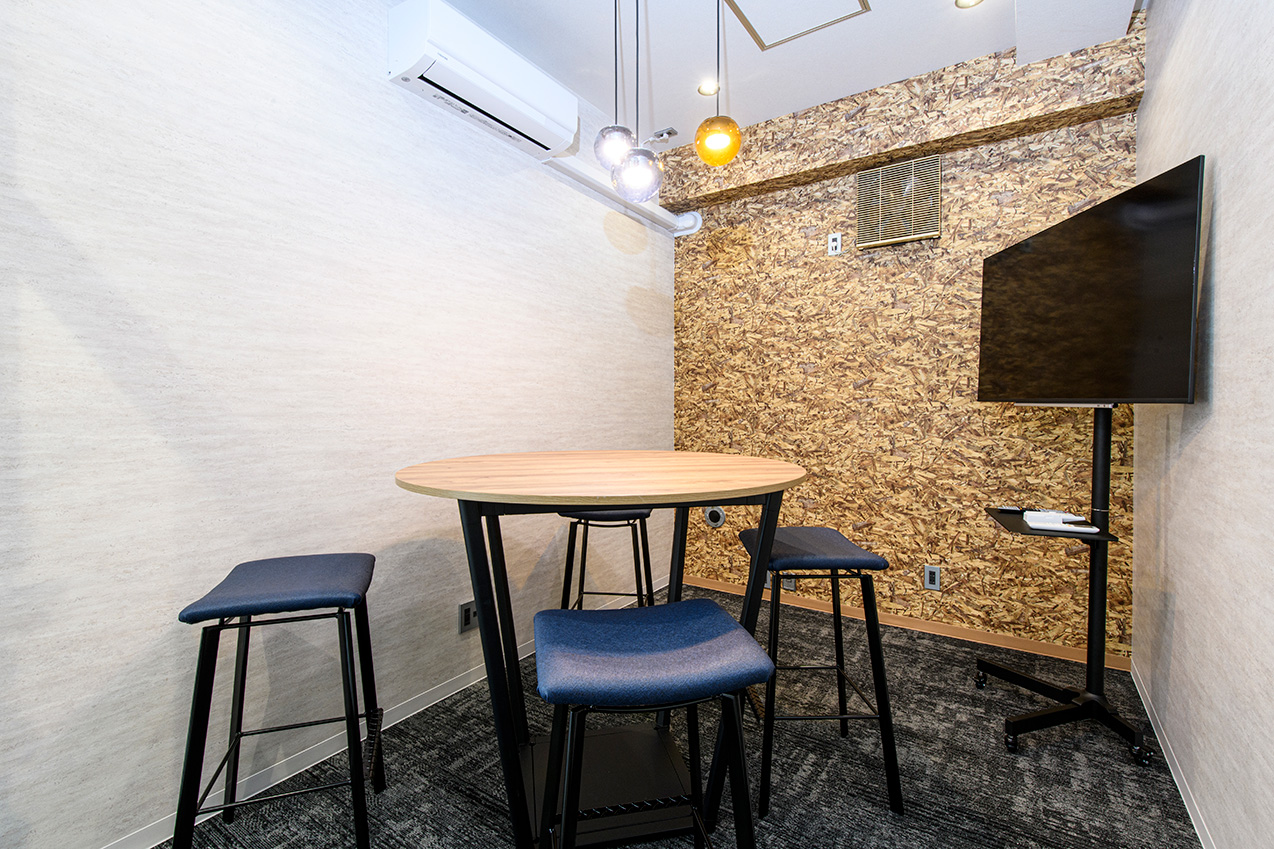 円形テーブルを囲んでのカジュアルな打合わせ〜落ち着いた会議まで幅広くご利用いただけます。