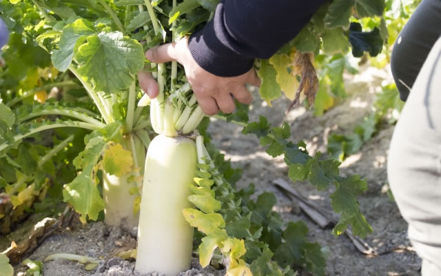土と触れ合って、大根掘りの体験をしてみませんか?掘りおこした大根はお持ち帰りいただけます。