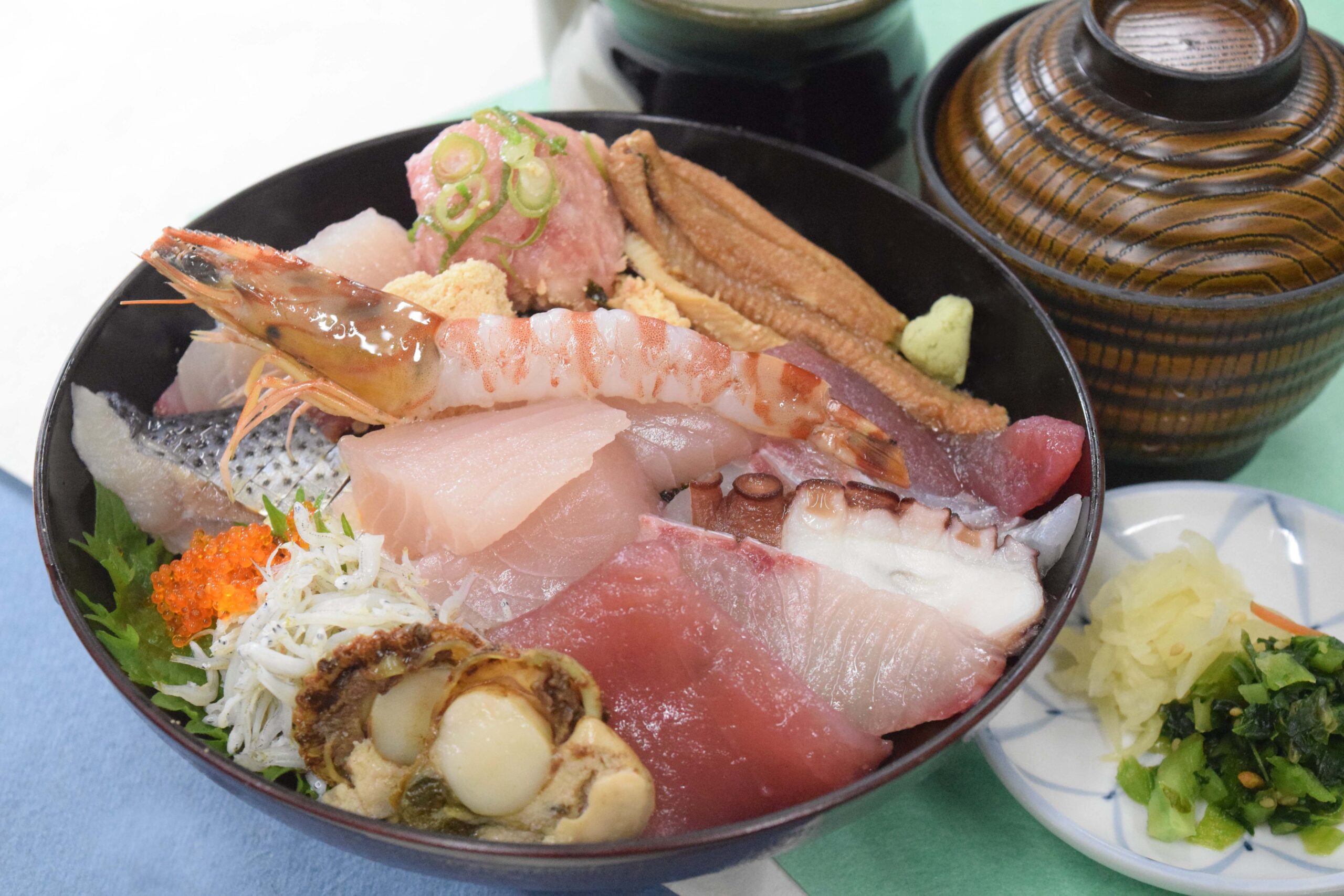 海老丸では「まぐろのてこね寿し」とその日のおすすめの魚で作る「二色のてこね寿し」をご用意しています。