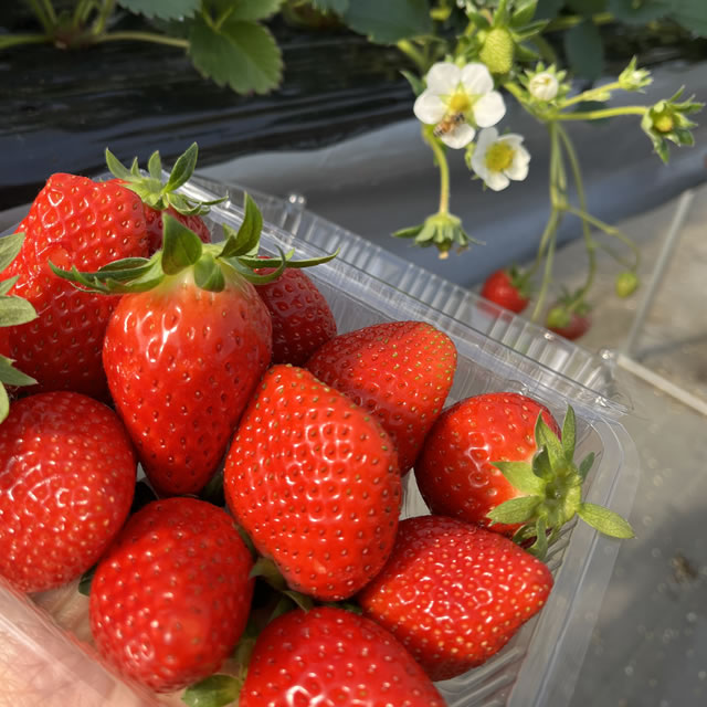 9時~10時 いちご園で、お一人様いちごを1パック摘み取り