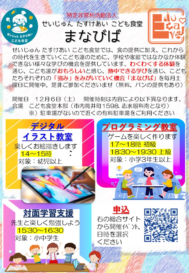 同日開催の昼食、学習支援に参加の方は別途予約が必要ですので、お願いします。