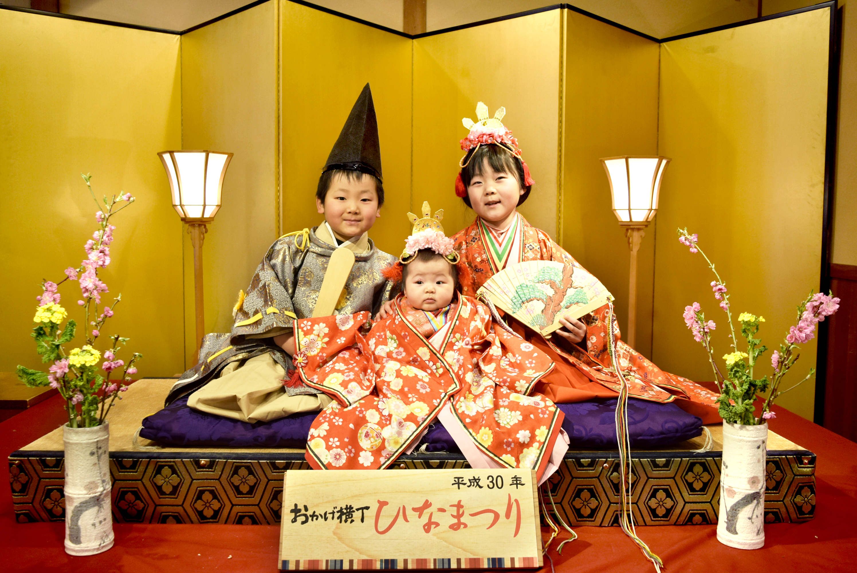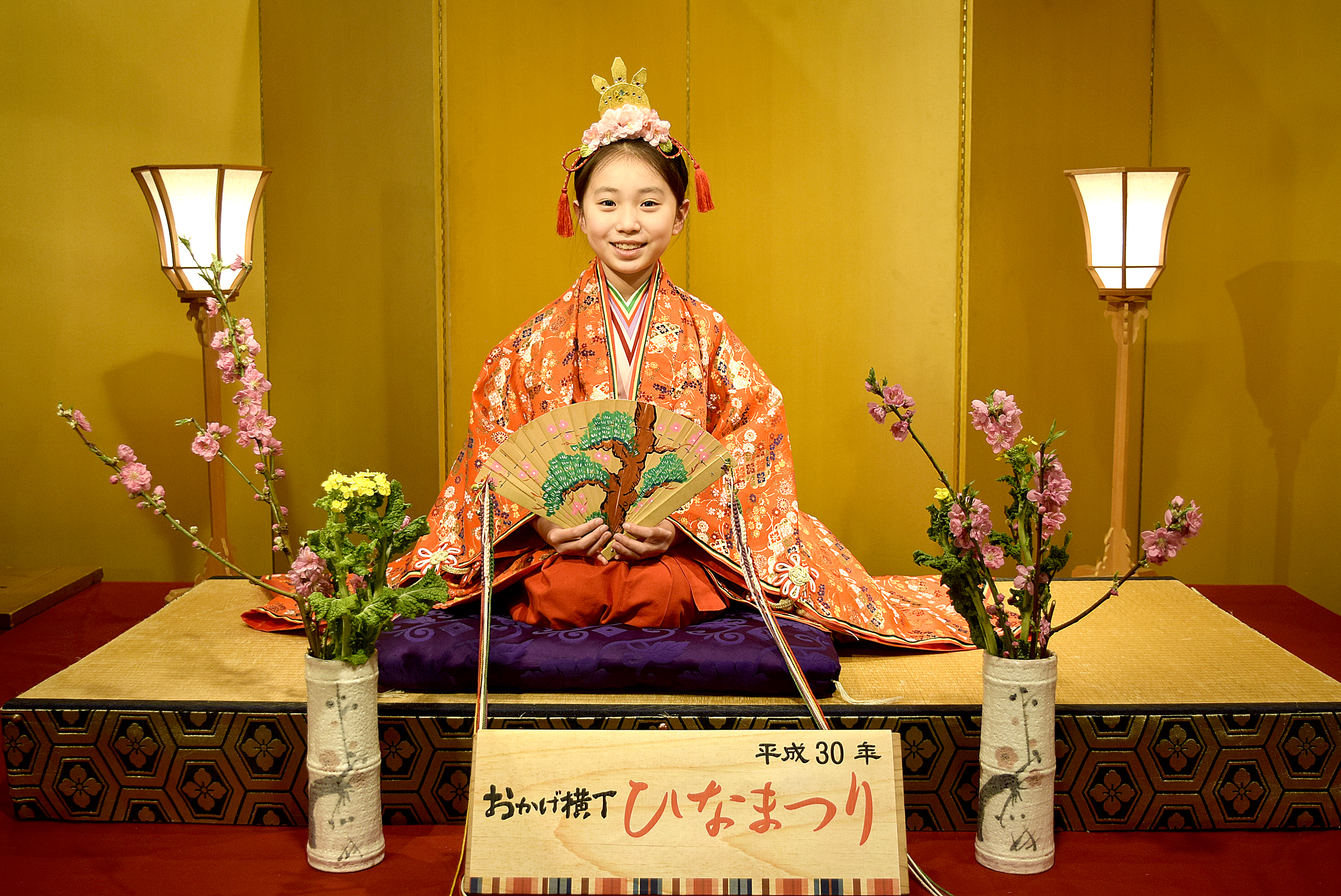 お雛さまの衣裳を身に着けて、ひな壇を舞台に記念撮影をしていただきけます。