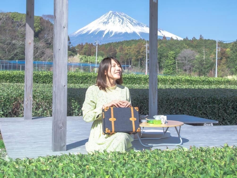 遠くに駿河湾を見渡す高台にあるオープン茶席から、雄大な富士山を望めます。