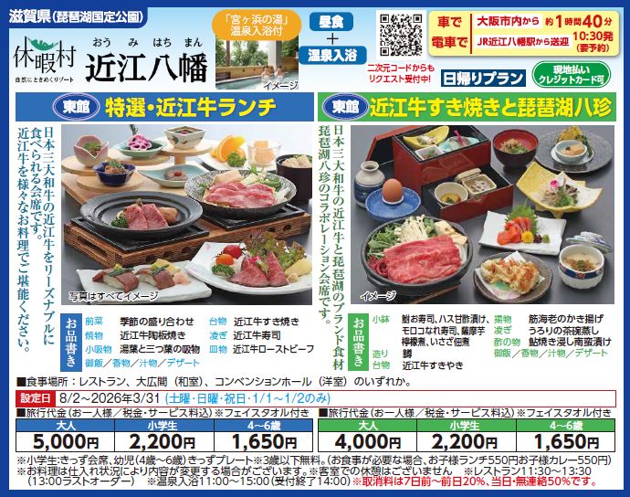 休暇村近江八幡 日帰りプラン 昼食+温泉入浴