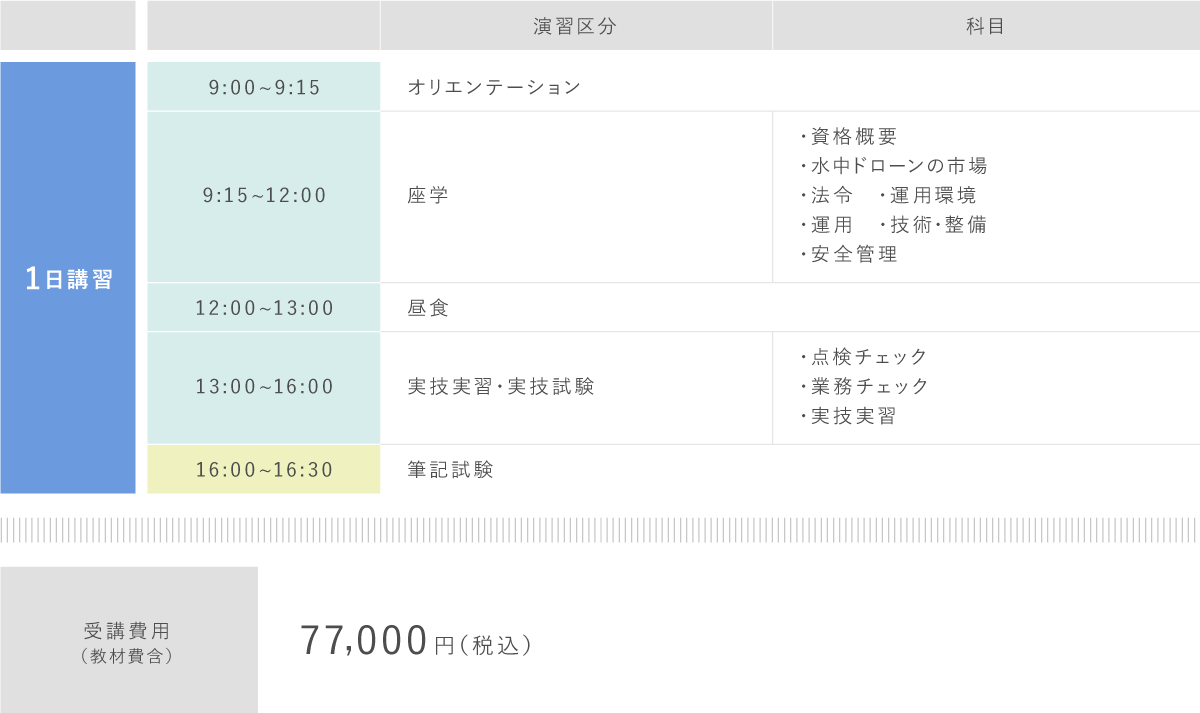 カレンダーに記載がない日程での受講をご希望の方は別途電話、お問い合わせフォームからご連絡ください。