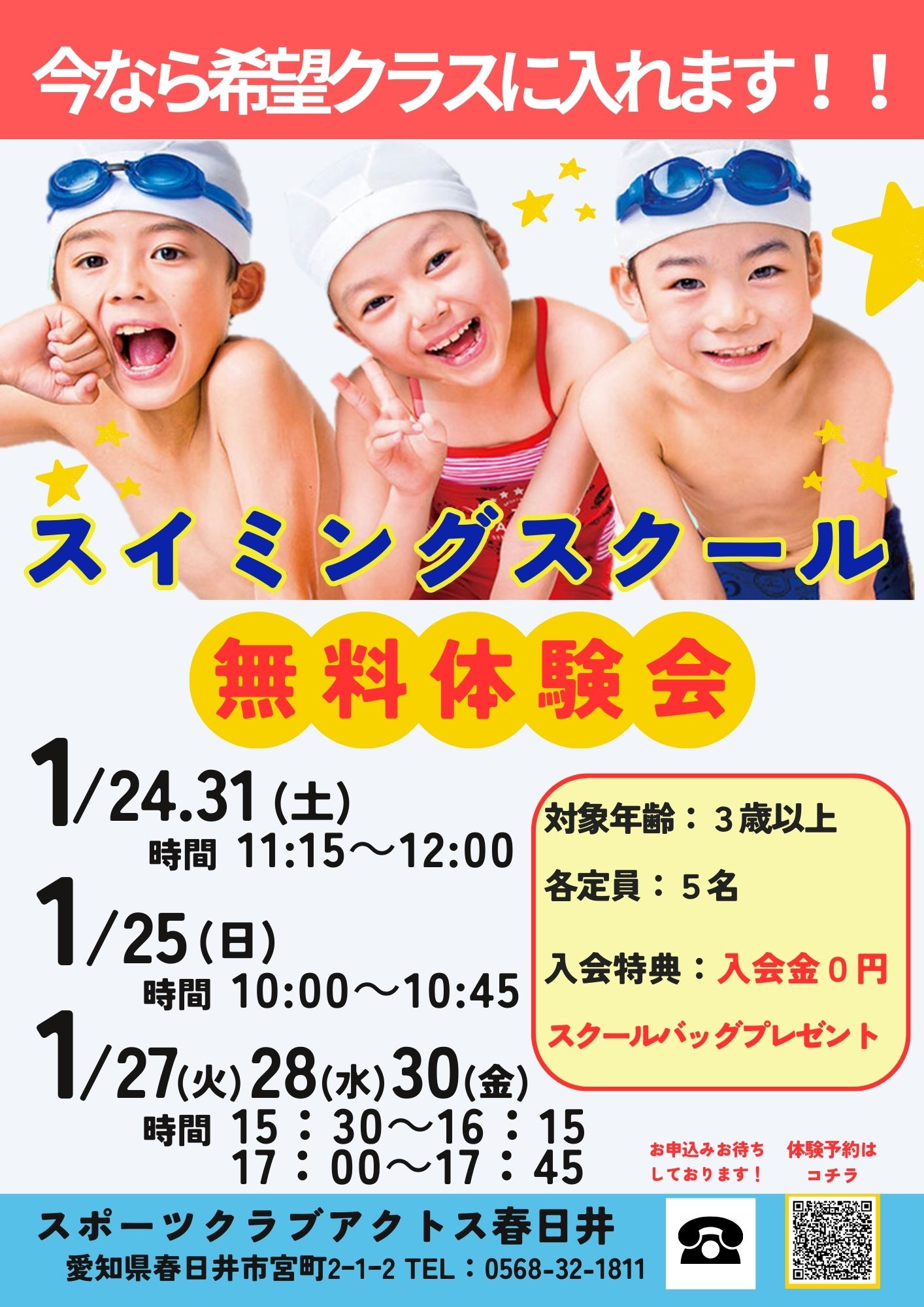 1日体験会・既存クラス・学校対策水泳教室体験開催中!!