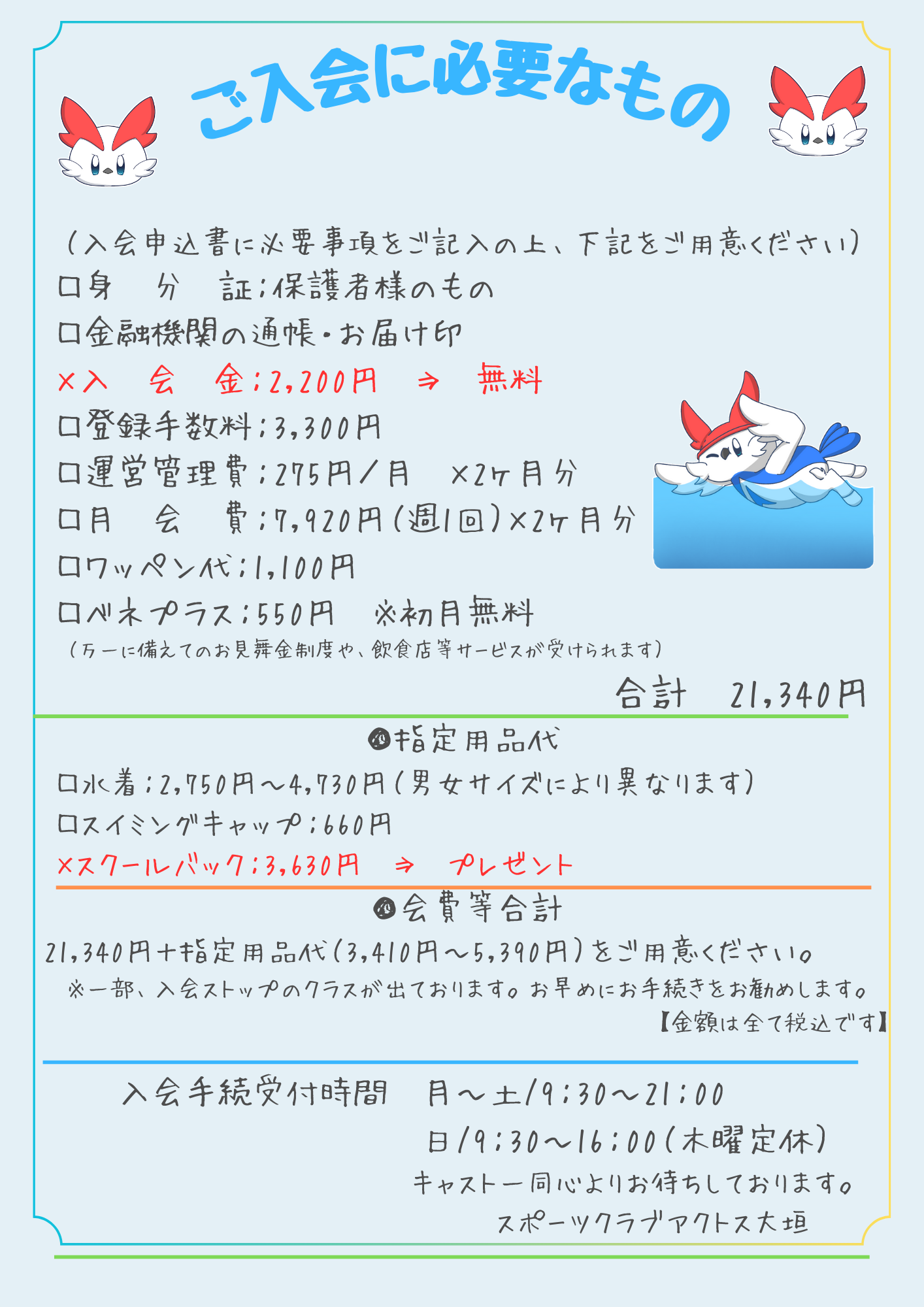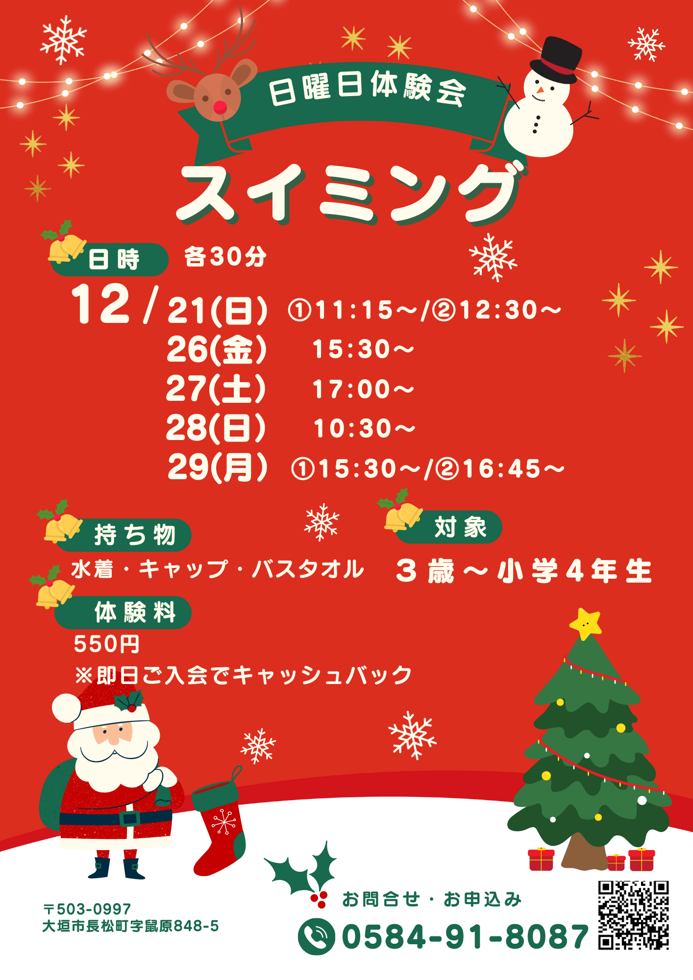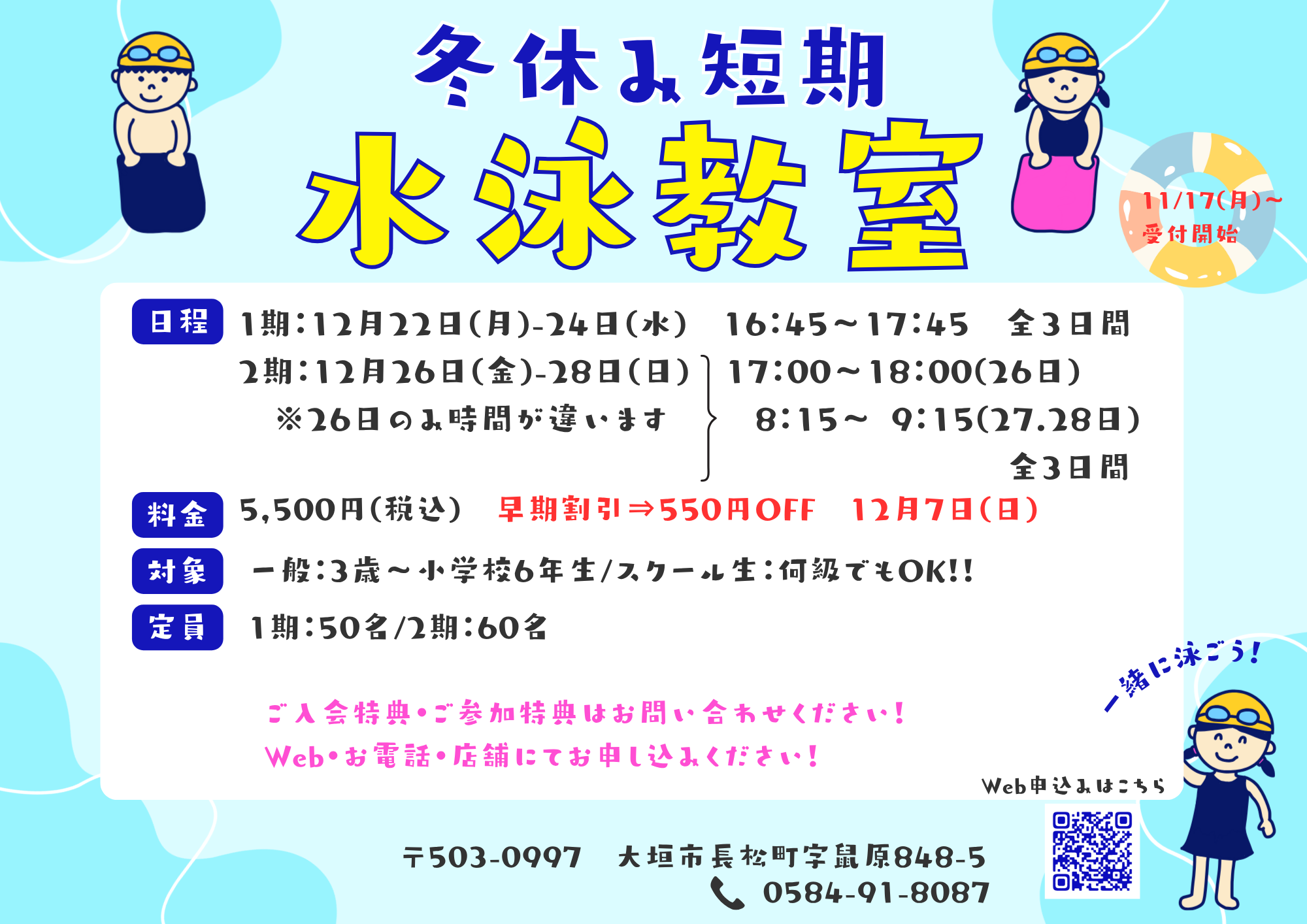 アクトス大垣店のスイミングスクール体験予約フォームです。