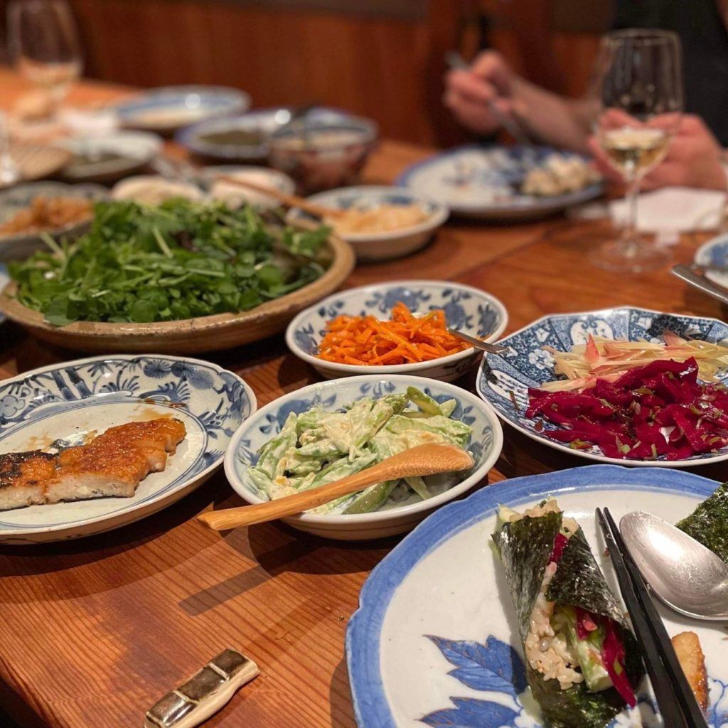 オーガニックのお野菜やフルーツ、ヴィーガンチーズ、各種ソースをみなさんでお好きに組み合わせて手巻き寿司に。