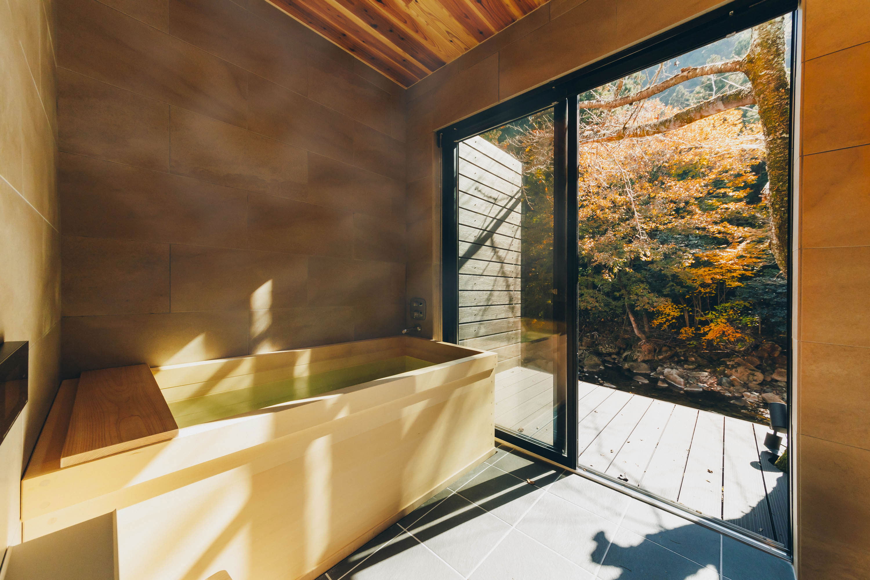 春の桜、初夏の新緑、秋の紅葉、冬の雪、川のせせらぎ、木々のざわめき、虫の声、鳥のさえずり、自然のオーケストラを聴きながら、四季の移ろいを五感で感じてください。