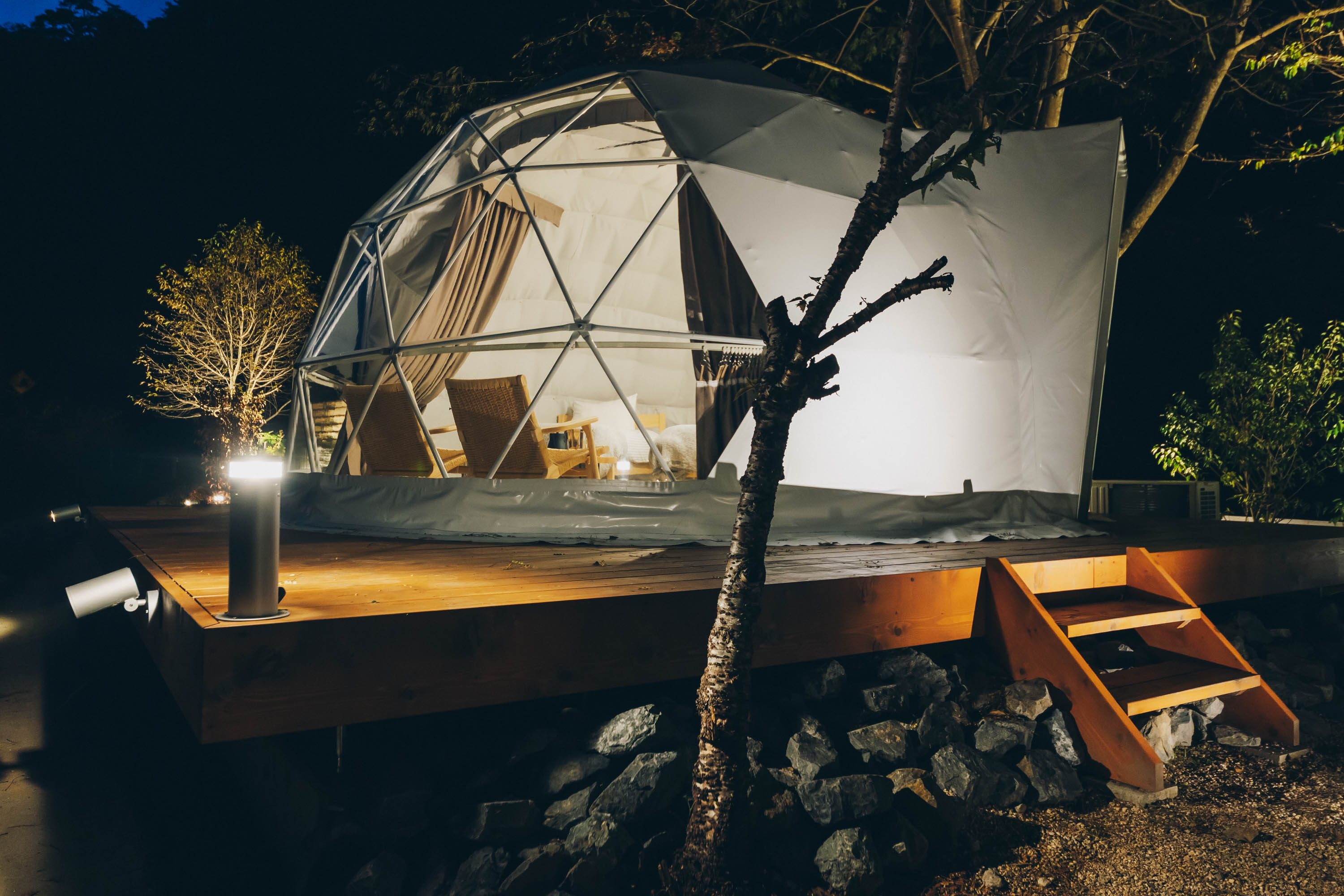 建物とドームテントにはWi-Fi設備があります。