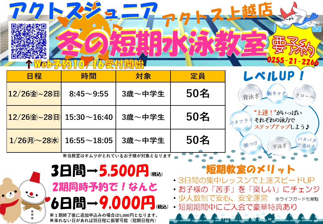 スポーツクラブアクトス上越店スイミングスクールの体験予約フォームです。