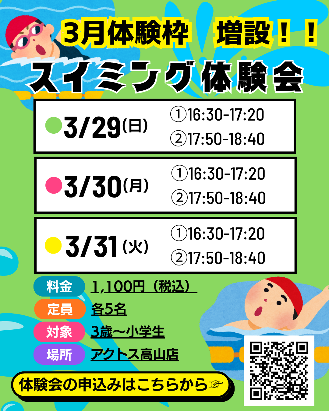{高山店}[スイミングスクール]体験予約フォーム