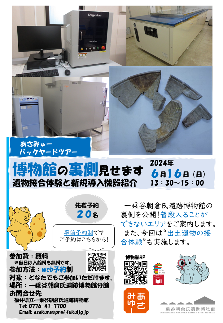 一乗谷朝倉氏遺跡博物館の裏側を公開!普段はいることができないエリアをご案内します。また、今回は出土遺物の接合体験も実施します。