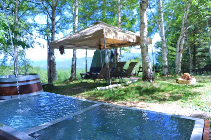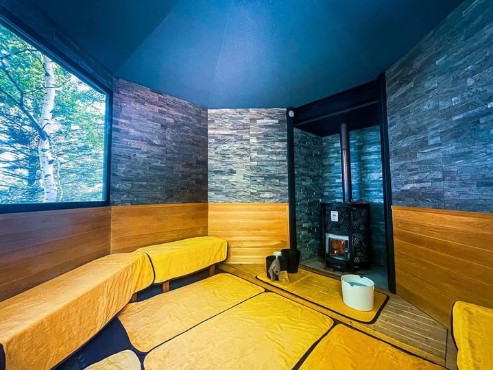 白樺に囲まれた森の中にあるアウトドアサウナです。