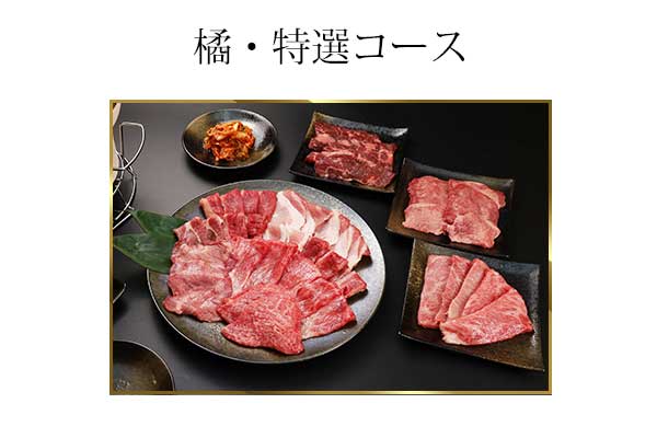 お肉:国産ブランド牛A5ランク 特選カルビ、特選ロース、モモ、特選塩タン、特選ホルモン、鹿児島県産黒豚ロース・バラ ※お席は120分までとなっております。 ※ご飯、キムチ、サンチュ、焼き野菜付きです。 ※飲み放題別途1,500円でご利用できます。