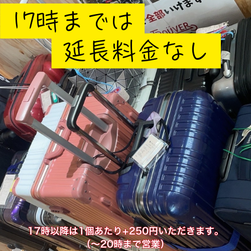 18時を過ぎても引き取られない荷物は翌日の10:00以降に 引き取ることができますが、荷物一つにつき1泊1,000円の料金が加算されます。※現地決済(現金不可)