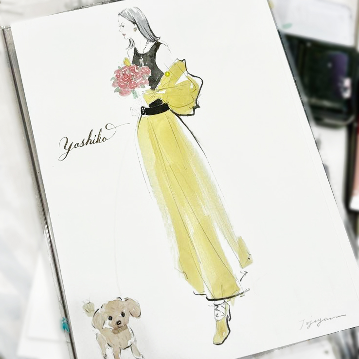 クリエイターJojo Yanがお客さまをモデルに洗練されたラインで描くスタイリッシュなスタイル画を制作いたします。