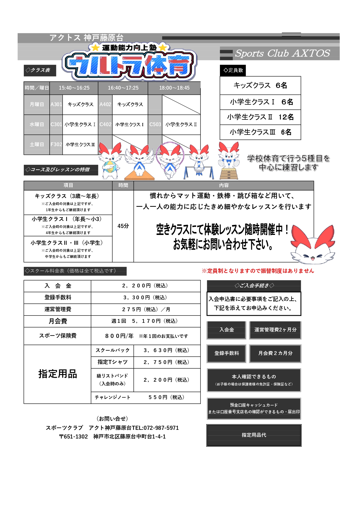 {アクトス藤原台店}[ウルトラ体育]体験予約フォーム